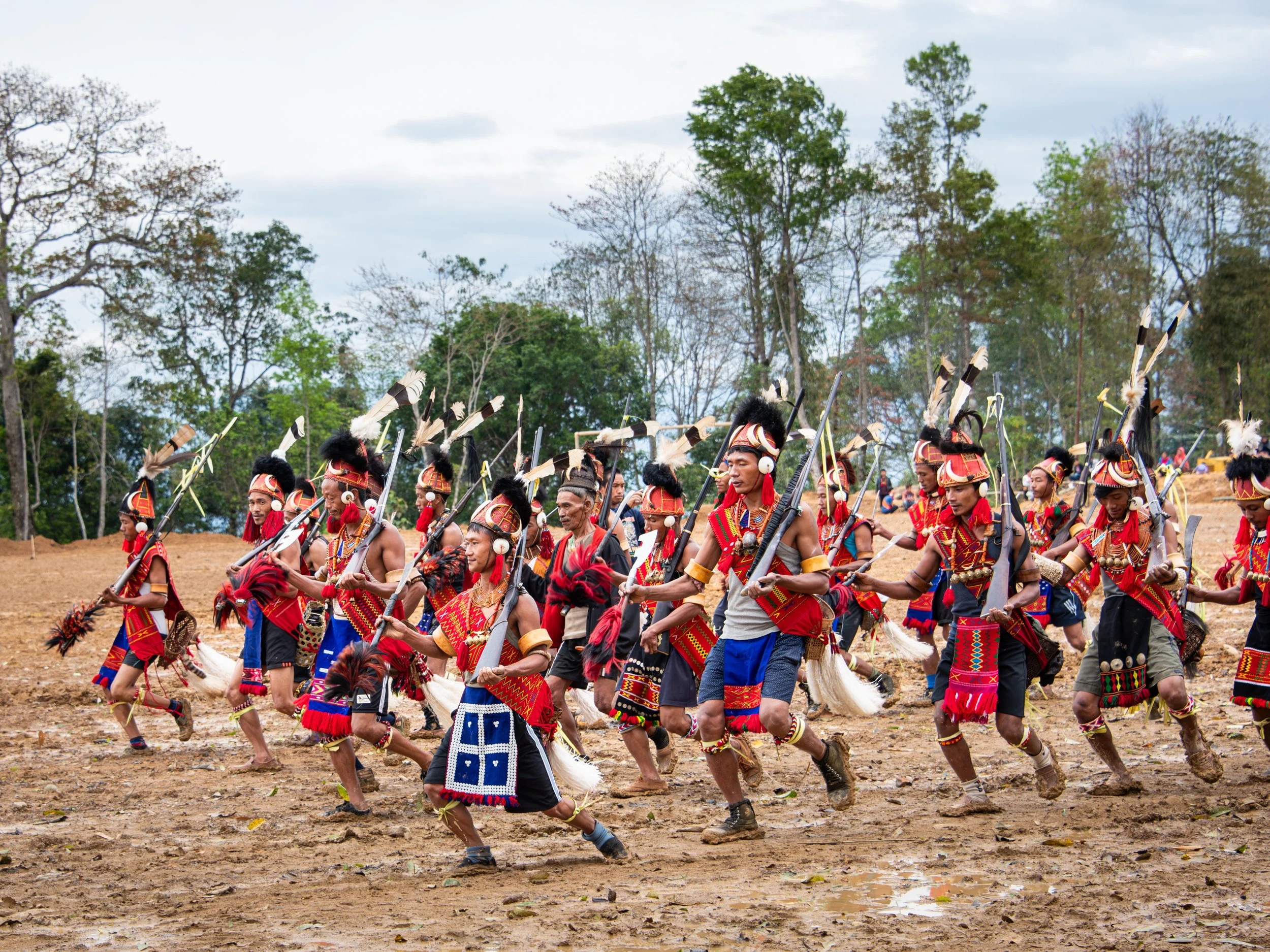 We visited remote Phuktong village where we toured the longhouse (and an adjacent opium den) and went out to a field where the local tribes were performing for a big local audience and a set of government VIPs on a very muddy field. It was an exciting challenge to walk backwards in ankle deep mud and water while taking pictures as they paraded and danced across the field. They also shot off their antique black powder muskets, which are extraordinarily loud and are used to this day for hunting as well as ceremonial dances.