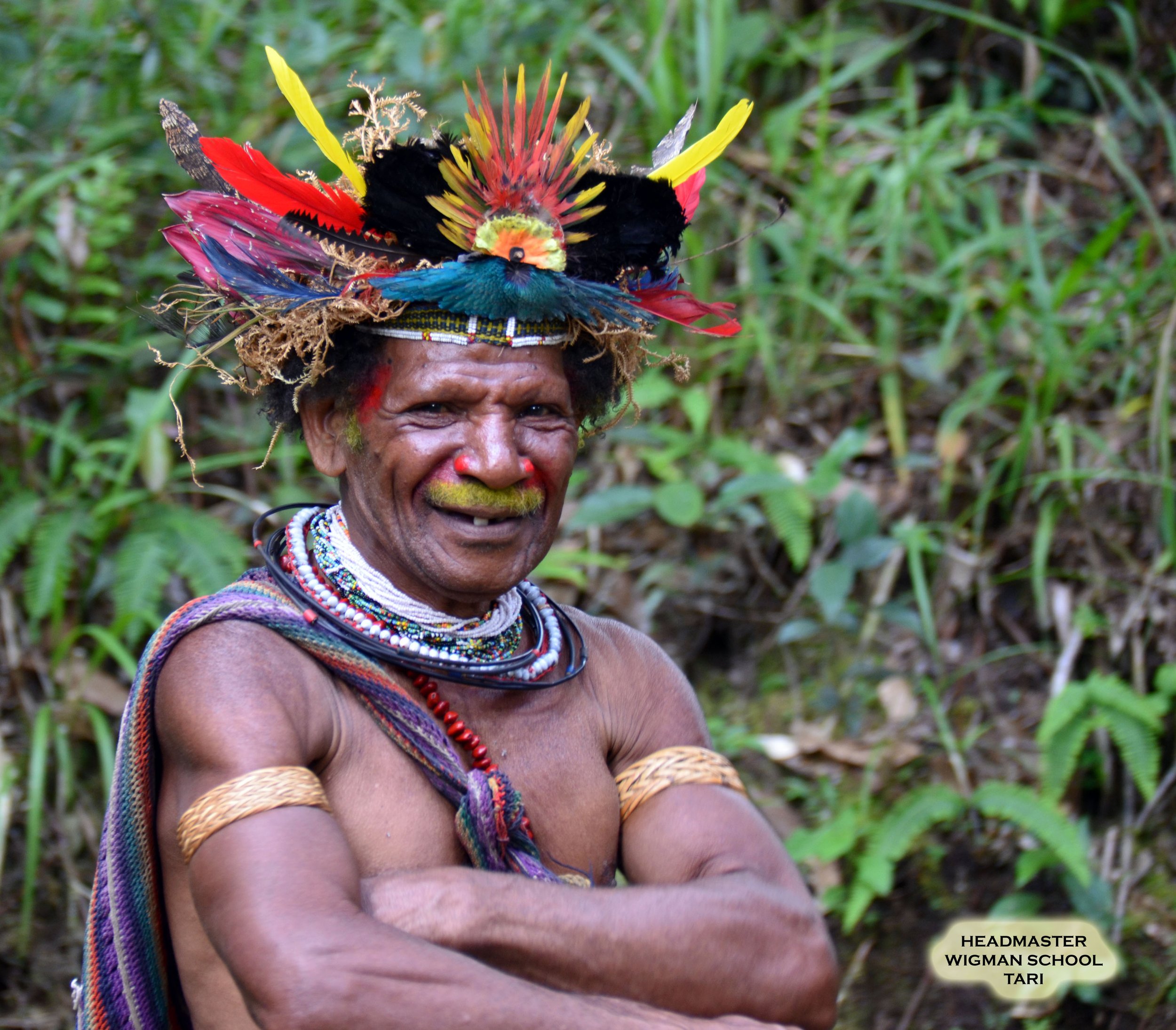 Ambua Lodge is located at 7,000 feet in the Tari Gap Area, which borders on pristine rainforest. It was our base for visits to several tribes and a visit to a local school, where I taught an 8th grade class about science, technology and mathematics. The teacher of the class asked me about my background, and, in addition to my college work mentioned my service in the Navy and the Vietnam War, all the boys in the class decided I was a "warrior" and suddenly I had respect.